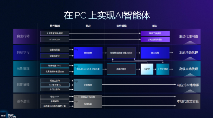 针对当前及未来AI应用场景,英特尔也分享两个重要的PC端AI应用,一个是刚刚提到的多帧生成功能(XeSS-MFG),另一个则是整个AI行业备受关注的“AI智能体”。有关AI智能体的概念就不过多赘述了,目前包括PC、手机等更多终端均在围绕AI智能体挖掘创新点。