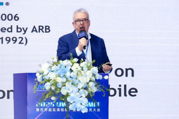 国家广播电视总局科技司标准处处长彭洁颖就2025超高清高质量发展做政策解读。她表示,电视百年发展是人类追求高效高质信息传递的过程,超高清已成视听技术发展大趋势。获国家政策支持,2025年被定义为“超高清发展年”。当前超高清频道建设成效显著,18个超高清频道播出,多平台超高清节目占比超40%,超高清机顶盒总规模超2.86亿台;北上广先锋行动计划进展良好;超高清相关69项标准已发布,正联合UWA联盟推进小屏超高清标准编制并推广自主技术标准。广电总局将持续推进超高清全链条升级,也期待UWA及各界携手共谱超高清发展新篇章。