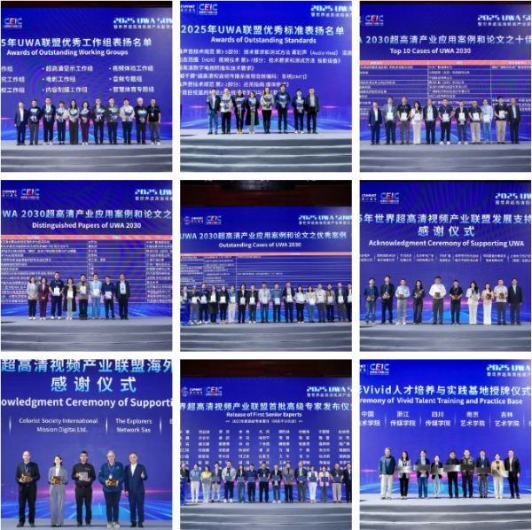 大会对联盟优秀工作组、优秀标准制定牵头单位进行了表扬;揭晓“十佳案例”“优秀论文”“优秀案例”“推荐案例”四大荣誉榜单,收录57家单位提交的78篇案例与论文;向联盟发展支持单位表示感谢,彰显产业协同价值;发布UWA联盟会士制度与高级专家库,首批高级专家代表获颁证书,为产业发展注入智力支撑。此外,联盟联合多所高校共建“菁彩Vivid人才培养与实践基地”,助力复合型人才培育。